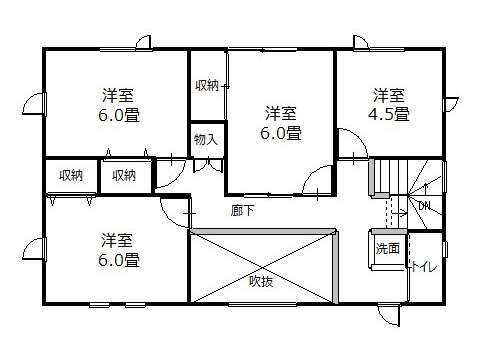 | 詳細間取 | 5LDK (1階:洋6帖×1、2階:洋6帖×3、2階:洋4.5帖×1、1階:LDK20.5帖) | ||