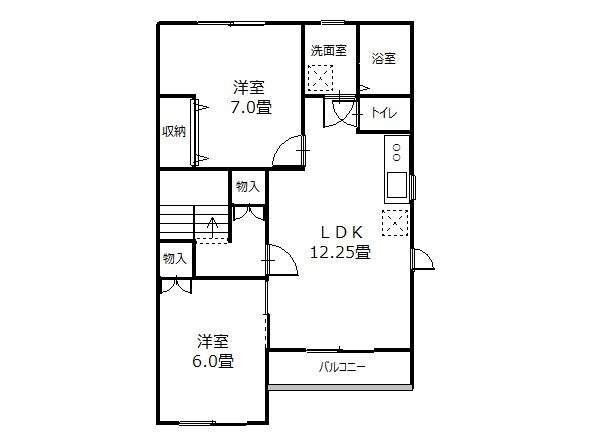 | 詳細間取 | 2LDK (洋7帖×1、洋6帖×1、LDK12.25帖) | ||